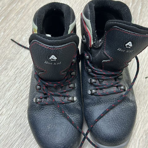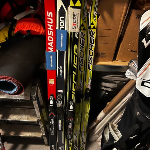 Str på kombisko er 32 og skiene er 130 cm lange.
