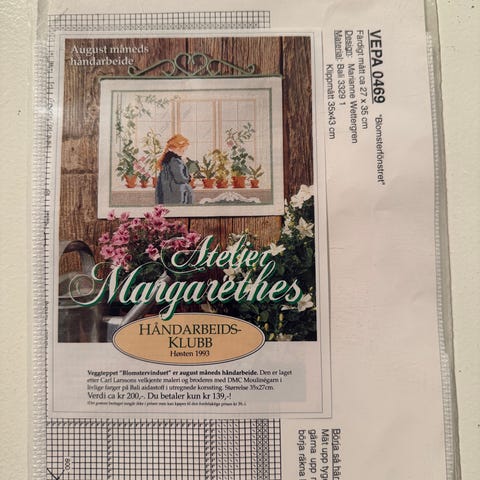 Motivmål : 24 cm x 18 cm. Antikkfarget ramme: 20 cm x 25 cm. Kr 650,-.