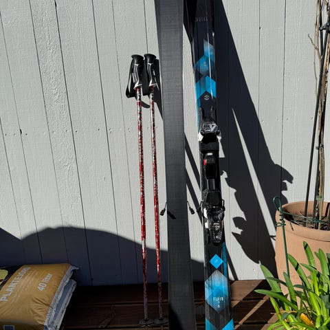 Rossignol Zenith Pro alpinski med bindinger og staver i svart farge. Skiene er egnet for alpint bruk og leveres med tilhørende bindinger og staver for komplett skiutstyr. Hjelm og briller. Støvler str. 270-275