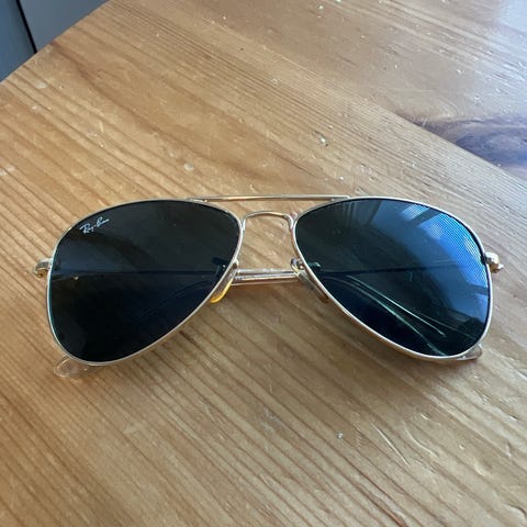 Ray-Ban Aviator solbriller for unisex. Brillene har en karakteristisk pilotstil med metallramme og speilglass. Designet for å gi beskyttelse mot sollys og redusere gjenskinn.