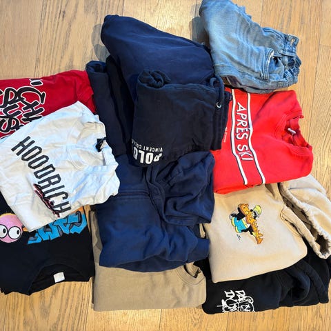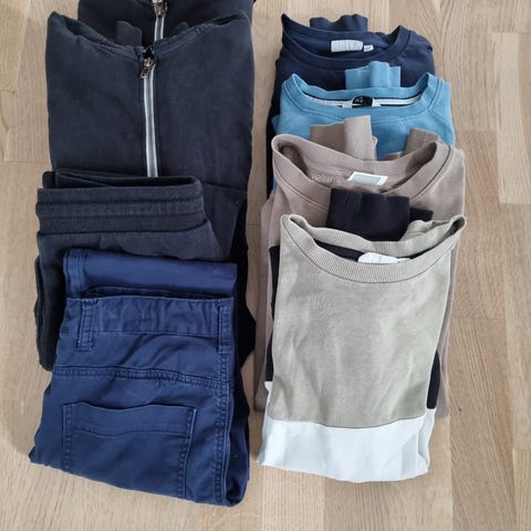 2 bukser, en cardigan, to hummel gensere, en hollister t skjorte, en lyle end scott, adidas bukse og en annen treningsbukse. Se bilder. 11 plagg. Må hentes