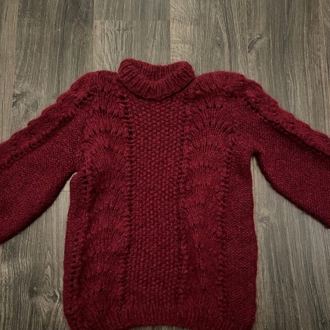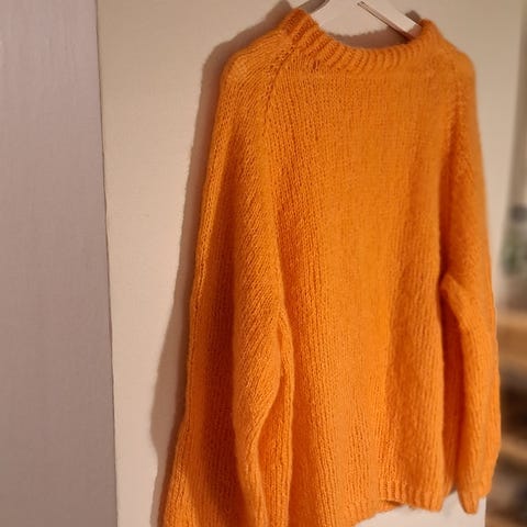 Hjemmestrikket veldig lett ullgenser strikket i en tråd Dale Kidsilk Erle.