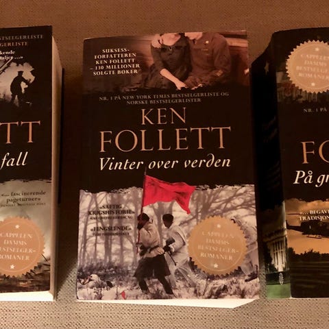 Ken Follet-trilogien «Century» selges samlet kr 200,- (norske utgaver)