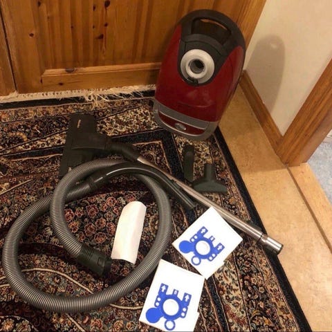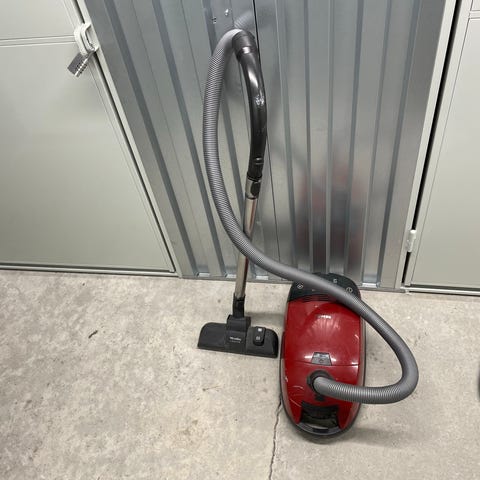 Miele Classic C1 Junior elektrisk støvsuger i rød farge. Leveres med teleskoprør og flere munnstykker for ulike rengjøringsbehov.