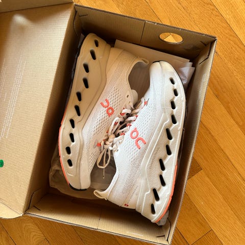 On cloudsurfer max - kun brukt i 40km. Størrelse 42. Denne tilsvarer 42.5 i størrelse sånn ca. Veldig mye sko igjen