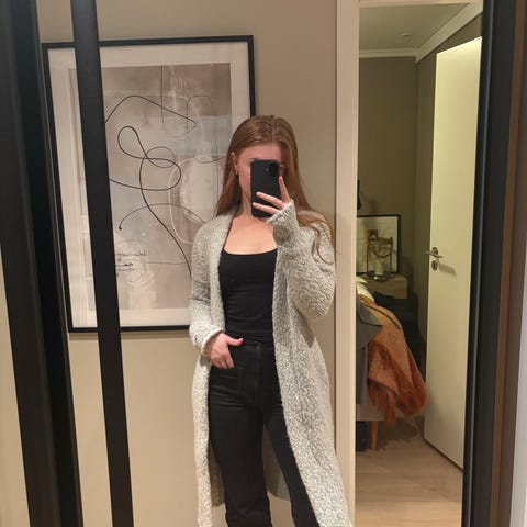 Denne Cardigan fra Merete Dehn Design er ubrukt og ny. Kommer med merkelappen på. Fargen er behagelig lys lilla.
