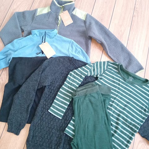 Selger 5 bodyer, 2 pysjamaser og 1 longs i ull.