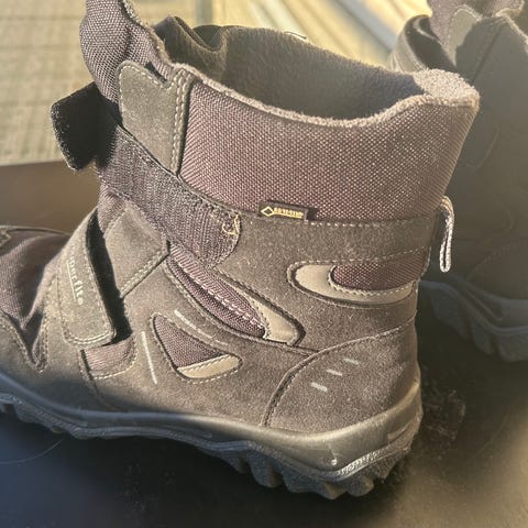Superfit Vinterstøvler for barn, unisex, størrelse 40. Støvlene har svart ytterside med blå detaljer og er utstyrt med borrelåsfester for enkel justering. Egnet for kalde værforhold.