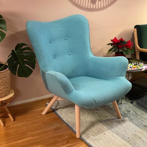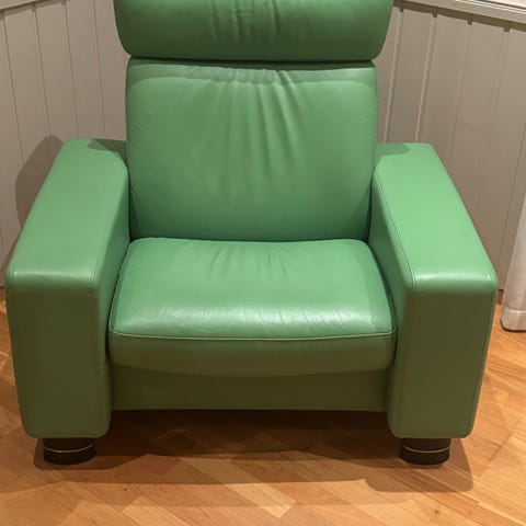 Litt slitt på utsiden av venstre armlene.
