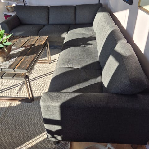 Vi selger vår gamle sjeselong sofa siden sjeselongen er på feil side for vår planløsning. Sofaen er i fin stand.