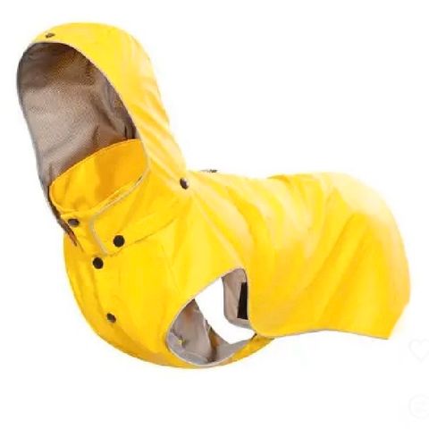 Regndekkenet er komfortabel å ha på og kjennes lett. På innsiden er det et pustende meshstoff. Det dekker godt og kan justeres på flere måte for å passe en rekke forskjellige hunder; både kragen, midjen og rygglengden er justerbar. På toppen er det en glidelåsåpning for at du lett kan feste båndet til en sele. Dekkenet har også elastiske stropper til beina, sånn at det holder seg på plass også i høy aktivitet. Fordi dekkenet er utstyrt med en spenne, er det lett å ta av og på hunden.