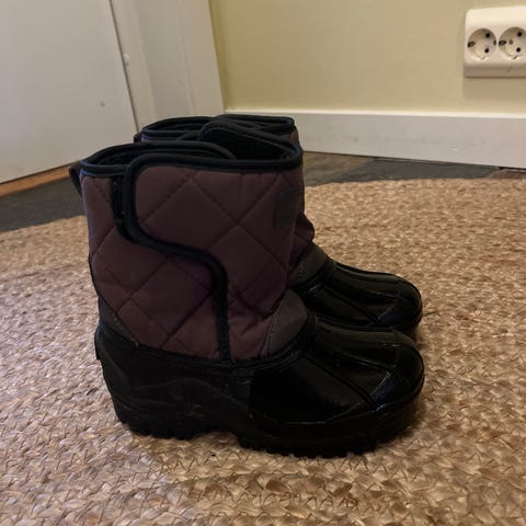 Reflex barne vinterstøvler i størrelse 21, unisex design. Støvlene er svarte og har en justerbar snøring øverst for bedre passform. Egnet for kalde værforhold.