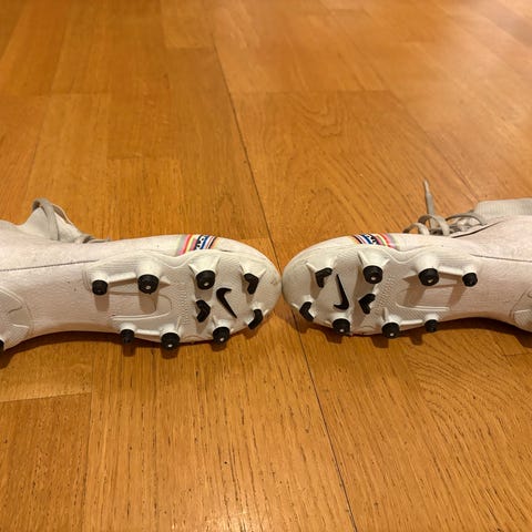 Nike Mercurial fotballsko i grønn farge, designet for barn. Skoene har knotter under sålen for bruk på gressbaner.