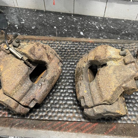 Nye store skiver foran, nye ventilerte bak. Brukte calippere foran og bak med klaver. Bør hentes, veldig tungt.