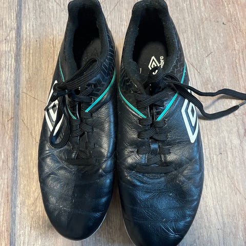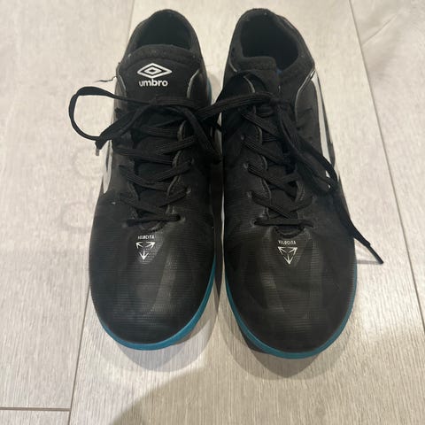 Umbro fotballsko i svart farge med gule detaljer. Skoene har lisser og er designet for bruk på fotballbanen.