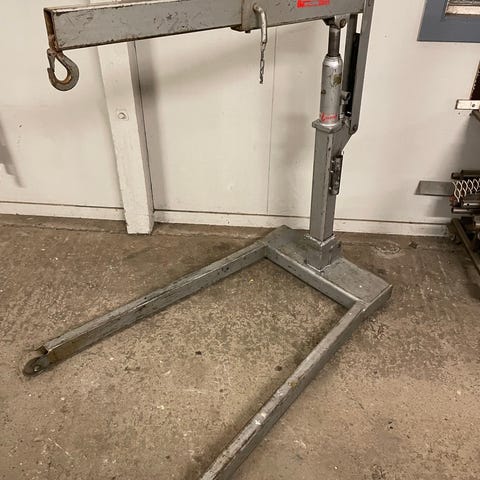 Verkstedkran for utløfting av blant annet bilmotorer selges.