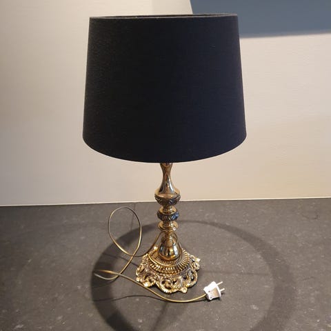 Lampe fra Kurant, med en nyere skjerm. Gir godt lys da du kan h inntil 60 watt. Lampen er nydelig ca 50 cm høyde uten skjerm. Med skjerm er lampen 75 cm og 50 cm på det bredeste.