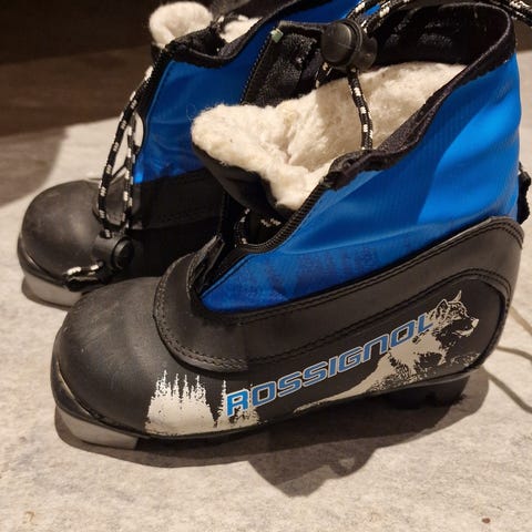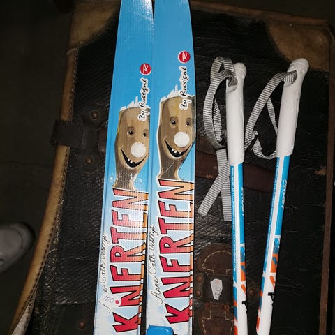 Åsnes ski til barn med staver. Fine begynner- ski for små barn. Kan festes til vanlig vinterstøvel.