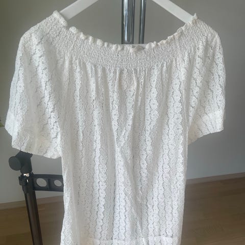 Saint Tropez topp i størrelse L, laget av chiffon materiale i hvit farge. Gjennomsiktig med sølvstjerner.
