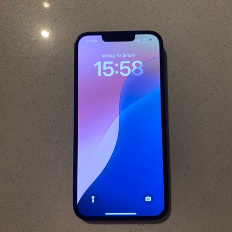 Selger en iPhone 14 128 GB i blå farge. Telefonen fungerer helt som den skal og er pent brukt.