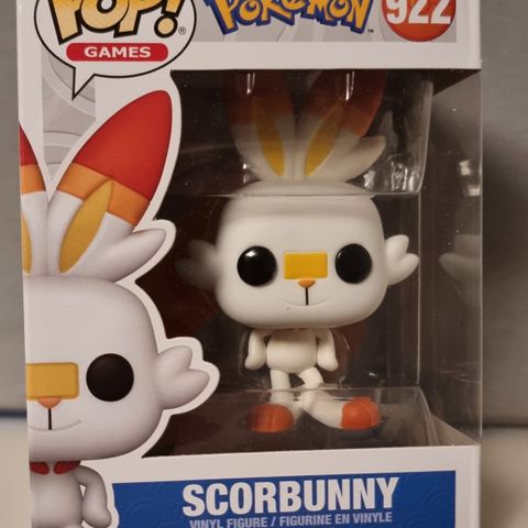 Funko Pop! Scorbunny Pokémon vinylfigur. Produktnummer 922. Figuren er laget av vinyl og forestiller Pokémon-karakteren Scorbunny.
