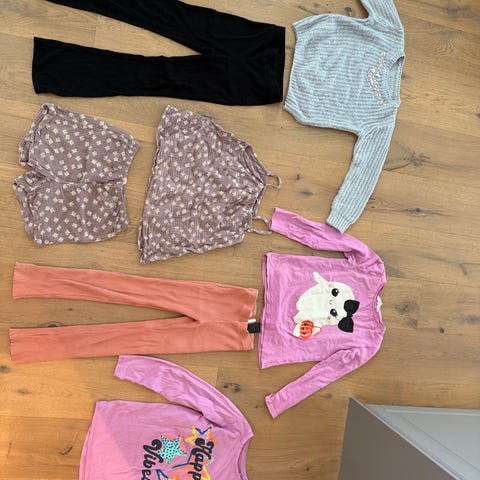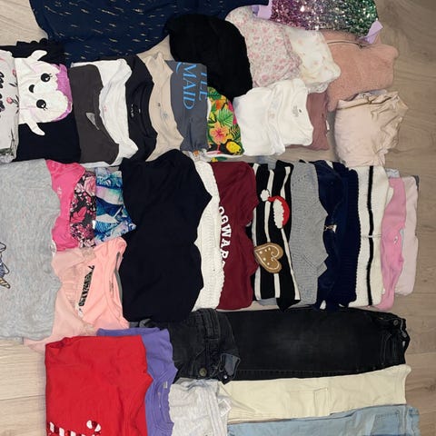 En pakke med klær til en jente på 8-10 år.