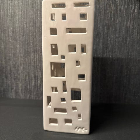 Kähler Urbania Brun Gingerbread lite lyshus. Produktet har form som et lite hus med vinduer som lyser opp. Designet i keramisk materiale med detaljer som etterligner et hus med tak og vinduer.