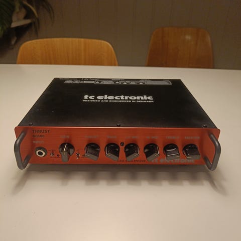 Denne forsterkeren har stått ubrukt noen år etter at vår unge bassist flyttet hjemmefra. Forsterkeren har kontroller for volum, bass, mellomtone og diskant. Farge svart. Designet for bruk med bassgitar, men kan benyttes for elgitar.
