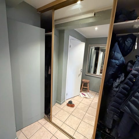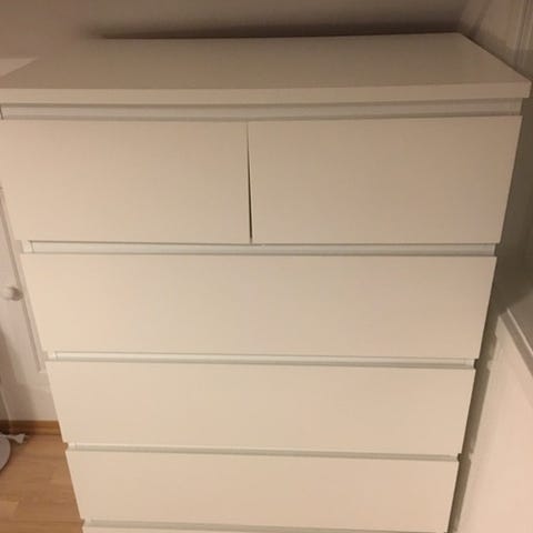 Jeg trenger ikke denne hyllen til garderobeskapet og har ikke pakket den ut. Se på bilder for mer info om mål. Må hentes i Asker.