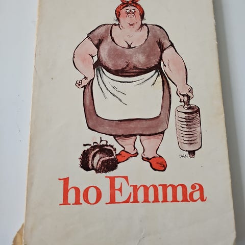 Arthur Arntzen Ho Emma bok utgitt av Tromsø Bokhandels Forlag. Boken inneholder illustrasjoner av Dagfinn Bakke og ulike historier som 'På kulturboks i Sørin', 'Hestkjøa', 'To store bryllup' med mer.