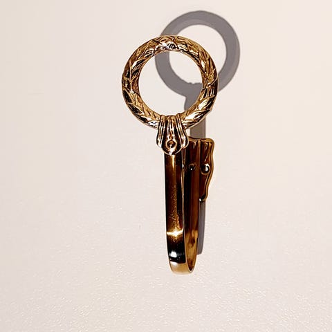 Dekorativ gardinholder i messing.