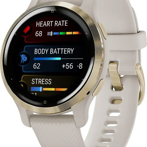 Garmin Venu 2 smartklokke med grå reim. Inkluderer ladekabel. Passer for brukere som ønsker en klokke med trenings- og helsefunksjoner.