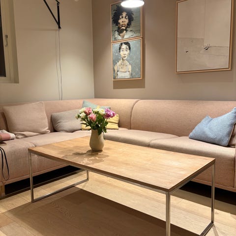Valnøttfarget sofabord. Hvis du pusser det ned og oljer, blir det så godt som nytt!