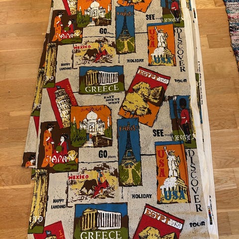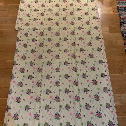 Sort bomullstoff med søte blomster og prikker. Bredde 89 cm, lengde 280 gr.
