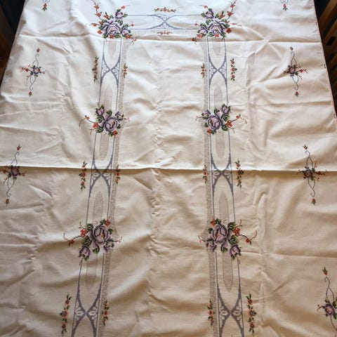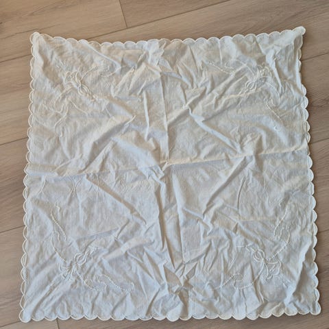 Gammel håndbrodet bomullsduk. Str 84 x 84 cm