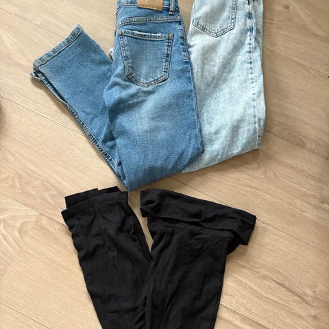 Iconic twisted jeans fra Gina Tricot Young i str. 164 selges da de er blitt for små. Det er et par små flekker ved venstre lomme (se bilde), ellers er buksa veldig pent brukt (kjøp høst 2025 for 459 kr).