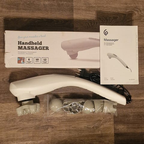 Dette er et massasjeverktøy som kommer med seks ulike hoder, slik at man fritt kan justere etter ønsket trykk og sted på kroppen.