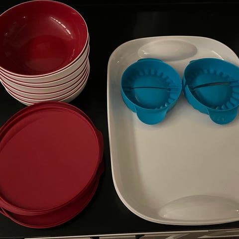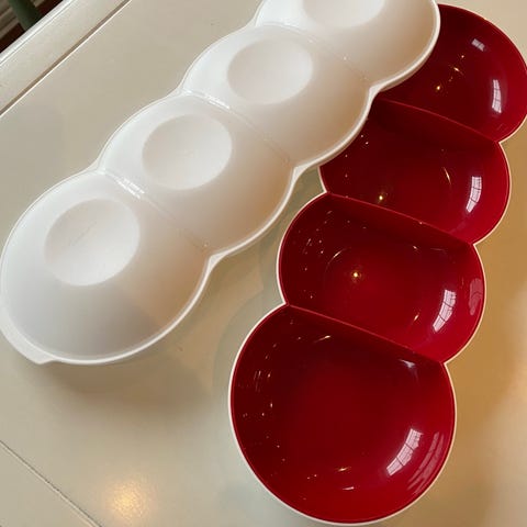 Tupoerware mandolinjern med skjærekassett, laget i plast og metall. Egnet for kutting av grønnsaker. Har kun en innstilling