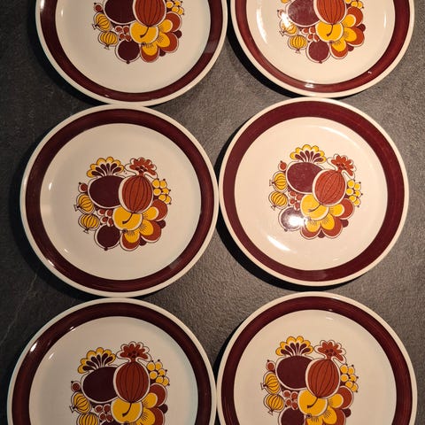 1 lokk til sukkerskål kr 75. Diameter 10,5 cm. Noen brune merker i kanten på undersiden.