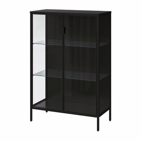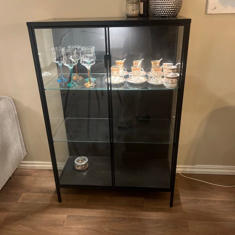 Se link for mer info: https://www.ikea.com/no/no/p/rudsta-vitrineskap-antrasitt-50450137/