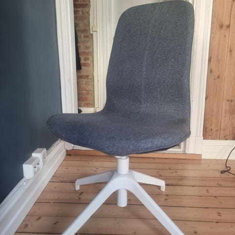 Långfjäll kontorstol fra IKEA med hvitt understell. Supert til hjemmekontoret.