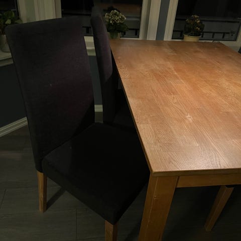 Føtter til eikebord. Har flere deler fra et kjøkkenbord, bortsett selve bordplate
