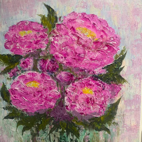 Tegnet maleri med motiv av blomster. Maleriet er signert av kunstneren. Rammet og klar til oppheng. Rammen kommer i tilleg😊 mål kommer senere!