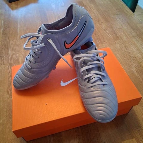 Nike fotballsko i størrelse 41 med svart overdel og gule knotter. Designet for bruk innen fotballsport, med snøring og knotter for godt grep på gressunderlag og kunstgresslag. Disse skoene er kjøpt men ikke brukt så de er helt nye
