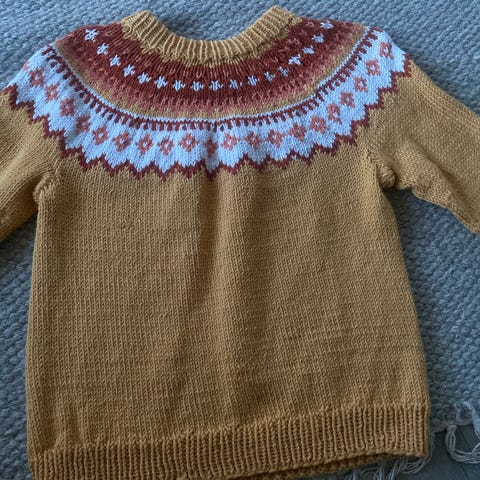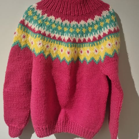 Pent brukt strikket ullgenser i størrelse 128/134 selges.