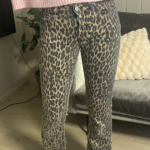 Leopard mønstret jeans i str 42 fra gina trikot. Baggy modell.