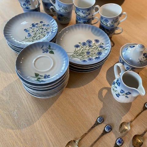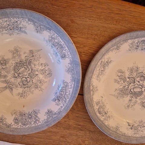 Underskålen måler 14 og asjetten 20 cm.