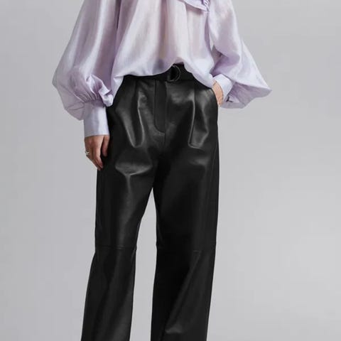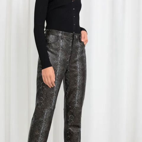 & Other Stories skinnbukse i svart farge, størrelse XXL med midjemål W32. Laget av skinnmateriale, designet for kvinner. Strl 46