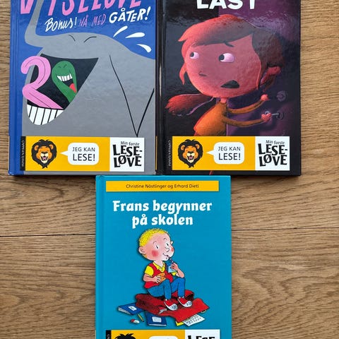 Leseløve barnebøker, inkludert Prompetroll, Otto Monster i familietrøbbel, Frans begynner på skolen og torsketryne.