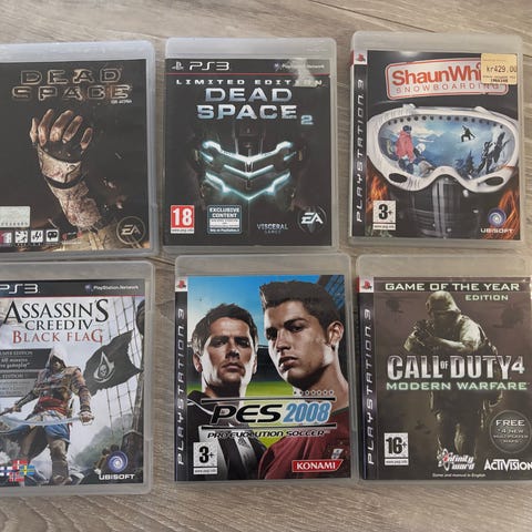 6 Playstation 3 spill selges samlet for 300 kr.